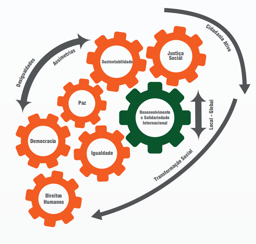 A ED é aqui entendida como um processo de aprendizagem ao longo da vida, comprometido com a formação integral das pessoas, com o aprofundamento do pensamento crítico e eticamente informado e com a participação cívica. Procura promover a tomada de consciência e a mobilização dos cidadãos, através de abordagens educativas e de temas transversais, para as questões do desenvolvimento e das desigualdades sociais à escala global.